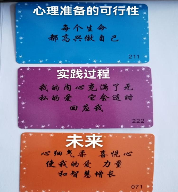 咨询师结合心聊原理,为孩子设计了基于圣贤“觉知为本”理念的日常练习,每次上课或写作业前,诵读短句三遍以唤醒本心:“现在,祈请我的本心、我的觉知、我的良知、我的高级智慧同我一道完成下面的[学科名称]学习。”通过重复诵读,引导孩子连接内在力量,提升学习时的专注力、归属感和心理能量。 这种心理练习是否可行,会经历什么样的过程,孩子会有怎么样的未来?咨询师引导孩子用龙卡进行了演绎,结果让人震惊。