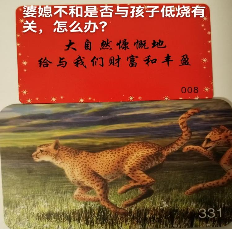 在家庭关系探究中,通过对“四岁”这一关键时间节点的情感梳理,印证了孩子的记忆与母亲描述的一致性——彼时夫妻因婆媳关系失和频繁吵架。咨询师借助动物神卡,验证他们是否相关。母亲抽取到“两只豹子互相追逐嬉戏”的图片,结合圣贤“家和万事兴”“序位归正”的文化内核进行深度解析,与孩子在这方面的态度和语言表达,母亲终于认可:婆媳关系不和导致家庭序位混乱,爱的流动受阻,孩子的良知被唤醒,心里在悄悄替奶奶抱不平。