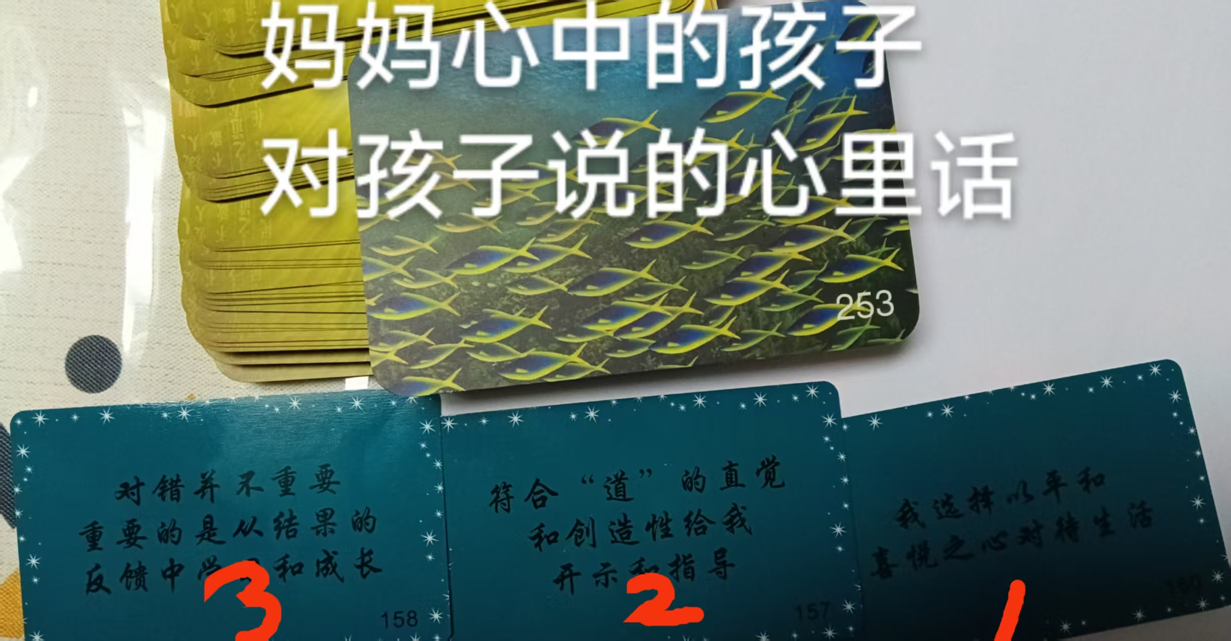 母亲抽取龙卡时,一张带出两张的偶然现象,是“三生万物”“和而不同”理念的拆解分析,揭示出她内心深处真正的诉求:希望孩子活出喜悦平和、与道同行的状态,超越对错执念,实现人格成熟与生命成长。孩子则以“只有体验才能把我们与我们的外界重新结合”回应,结合圣贤“知行合一”智慧解读,指出孩子虽尚未完全领悟,但已在潜意识中寻求情感连接修复的愿望与未来发展的途径。